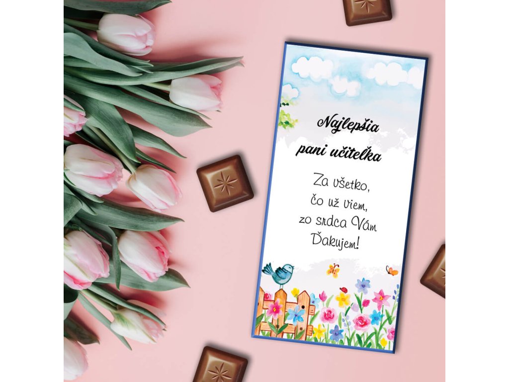 Čokoládu je možné vyrobiť aj s nápisom pre pani Vychovávateľku, asistentku, pani kuchárku atď. Uveďte nám to prosím do poznámky pri objednávke.