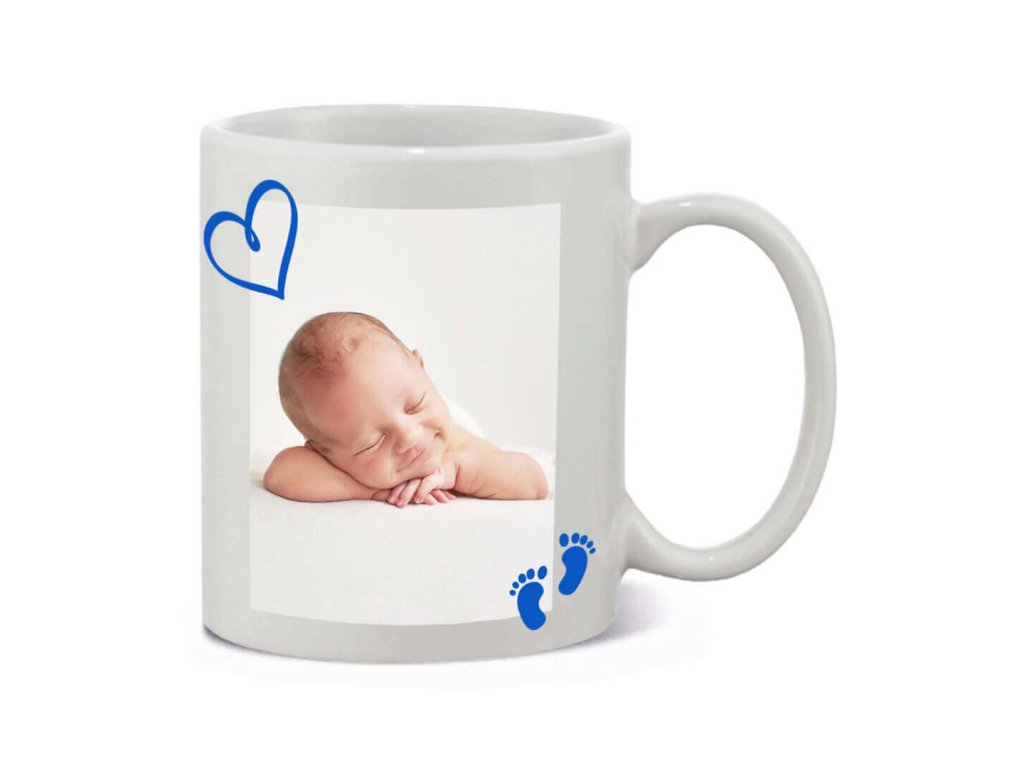 Hrnček s fotkou rámik DIEŤATKO modrý 350 ml FOTOpošta