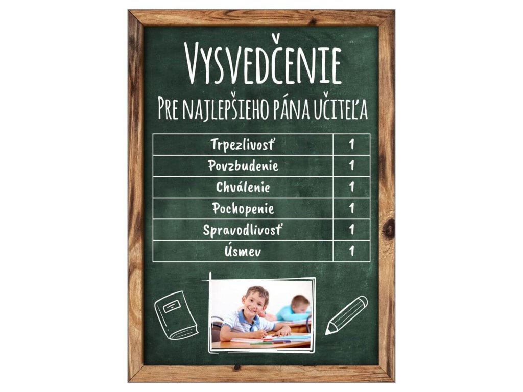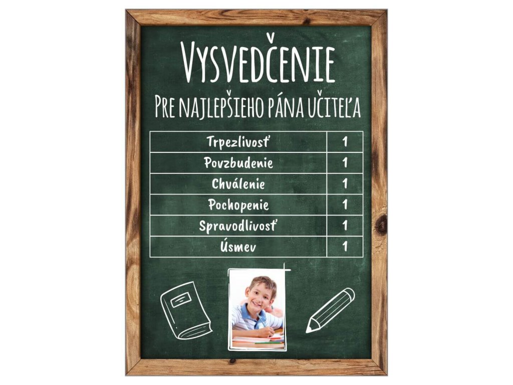 TABUĽKA Vysvedčenie učiteľ s fotkou zelená 21X15CM-Fotopošta