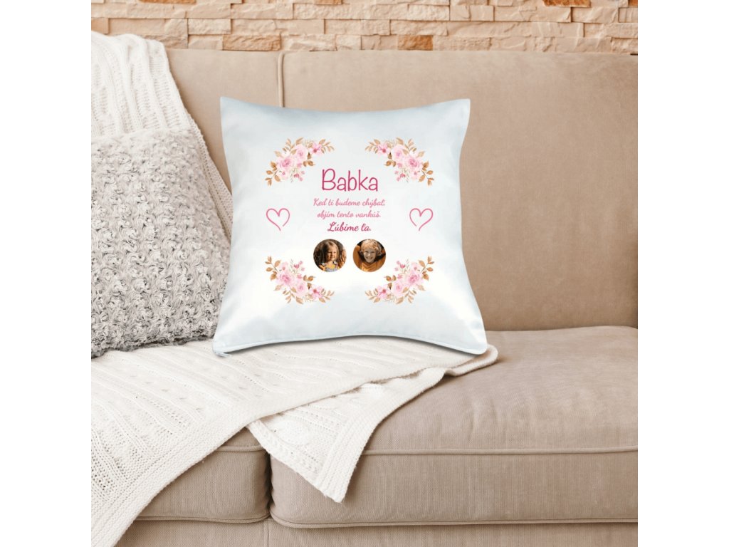 Vankúš s fotkou Babka objatie 40x40 cm FOTOpošta