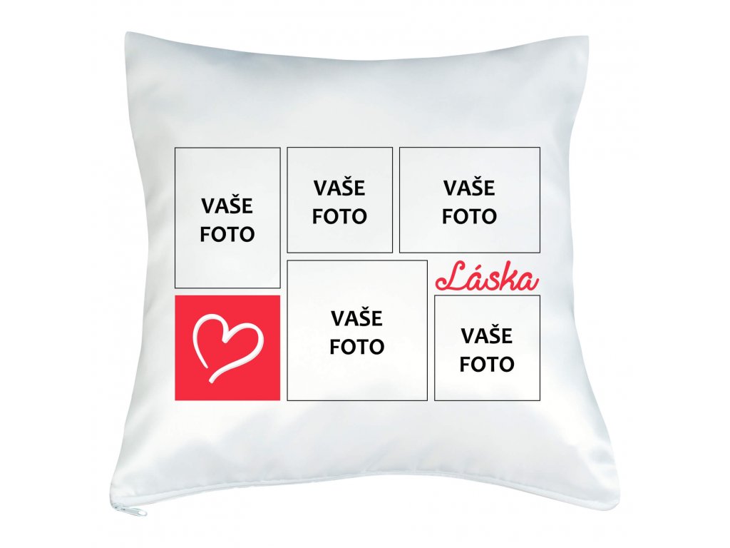 Vankúš s fotkou rámik Láska koláž červený 40x40 cm FOTOpošta