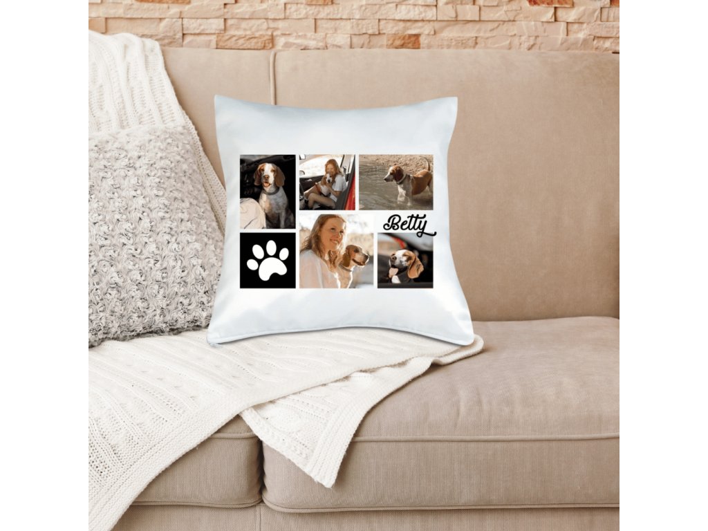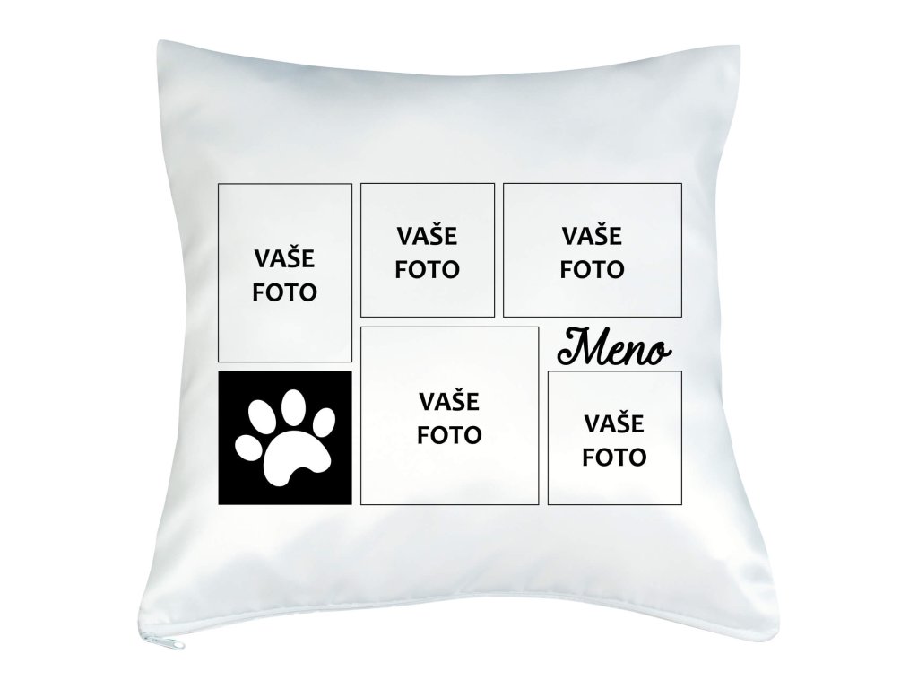 Vankúš s fotkou rámik Labka koláž čierny 40x40 cm FOTOpošta