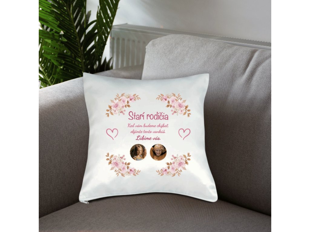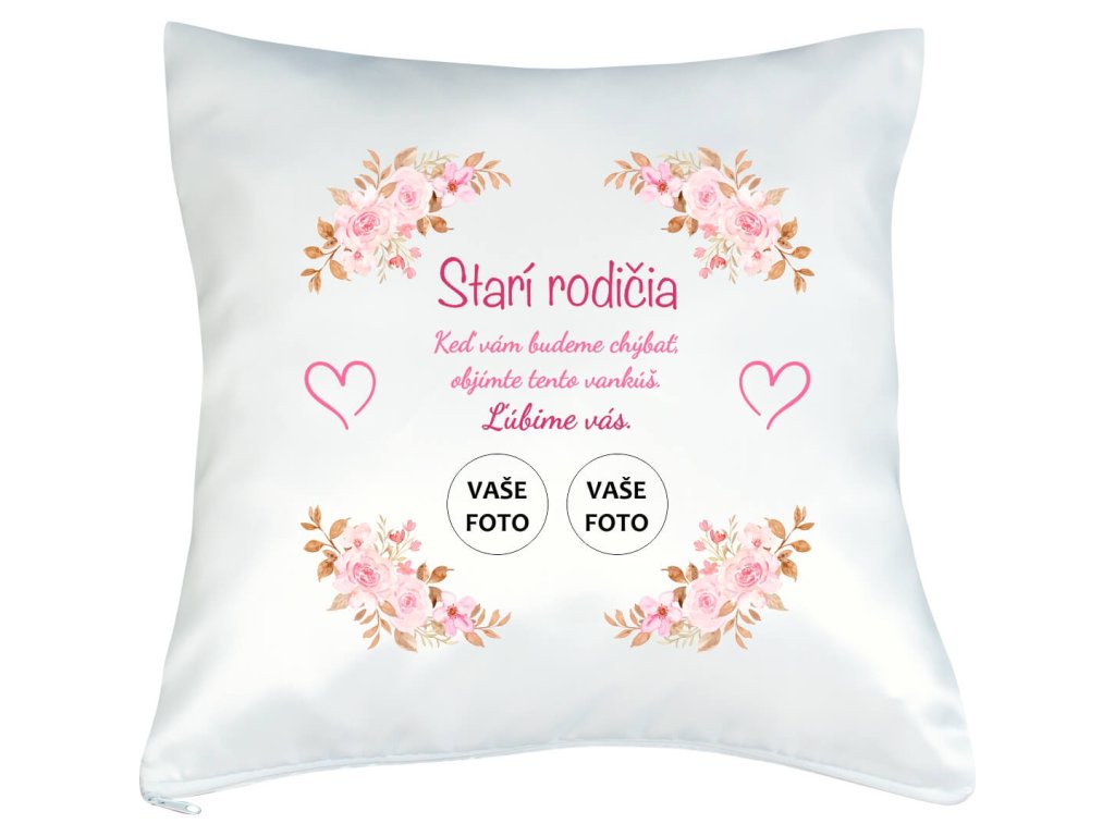Vankúš s fotkou Starí rodičia objatie 40x40 cm FOTOpošta