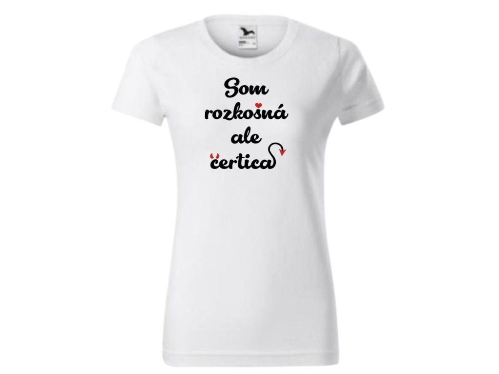 Vtipné tričko s potlačou čertica je ideálny darček pre ženy v ktoré sú ako anjel, ale je v nich ukrytý aj malý čertík...