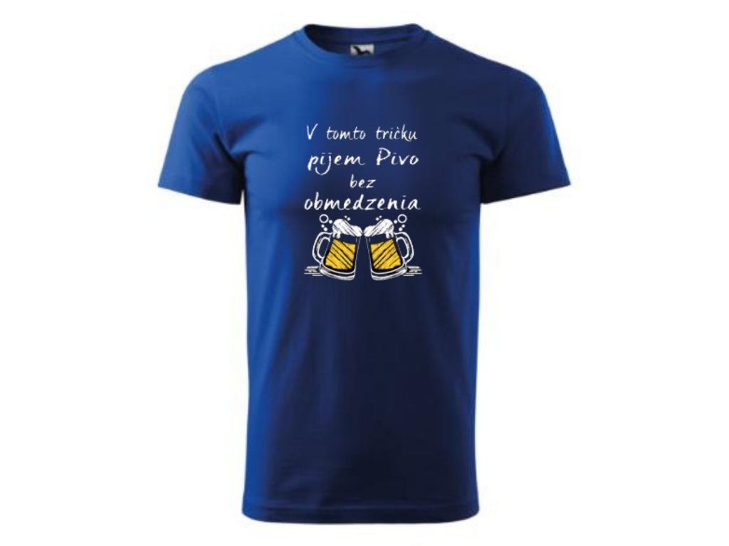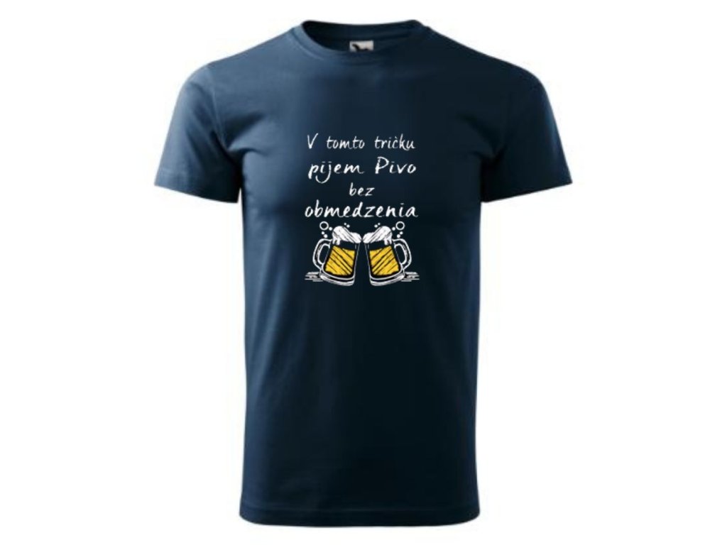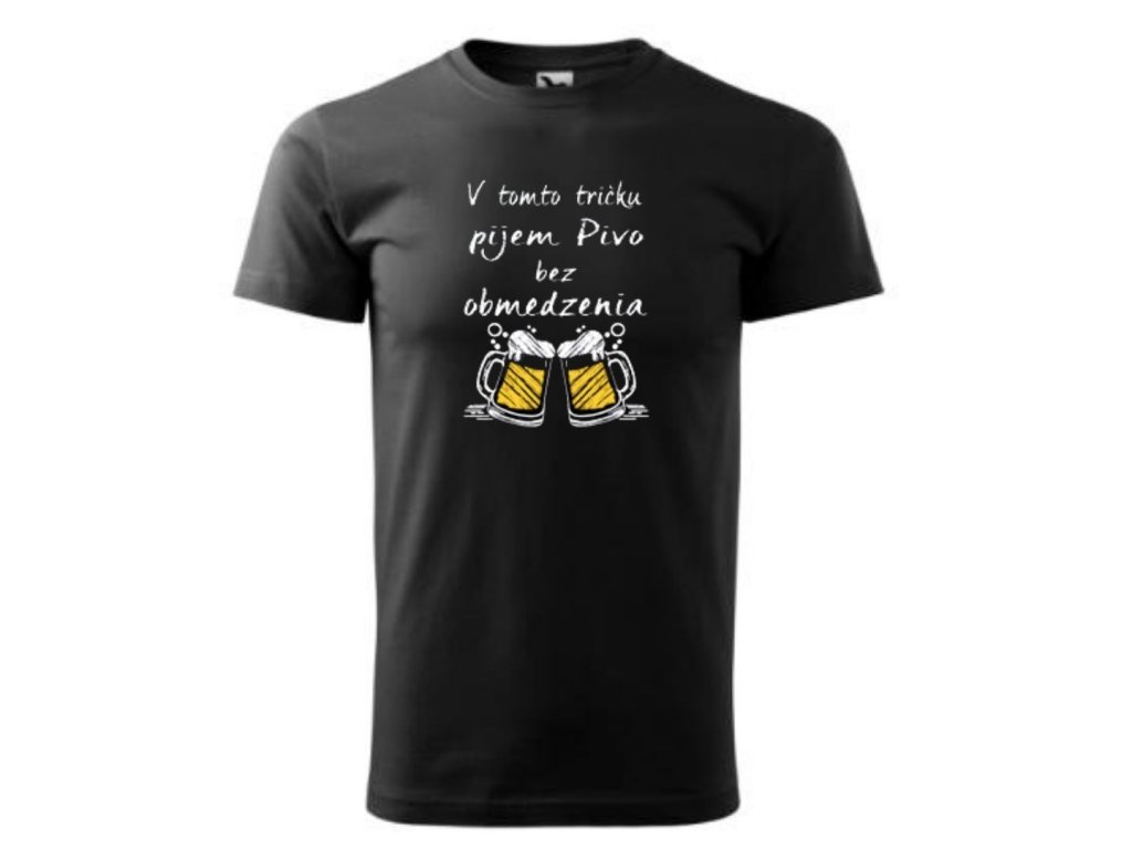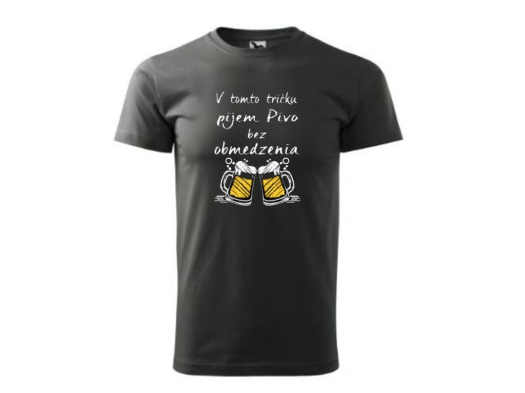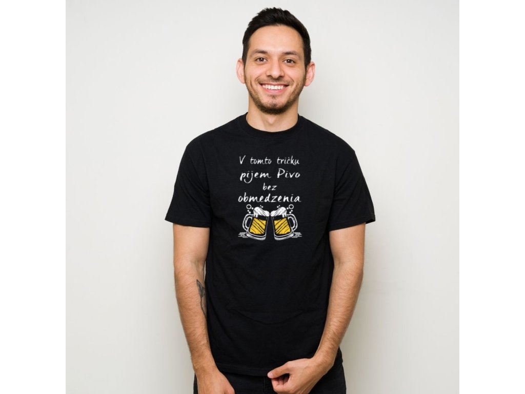 Vtipné tričko s potlačou v tomto tričku pijem pivo neobmedzene ... je ideálny darček pre každého muža ,ktorý miluje pivo a vie že len jedno chladené nestačí ...