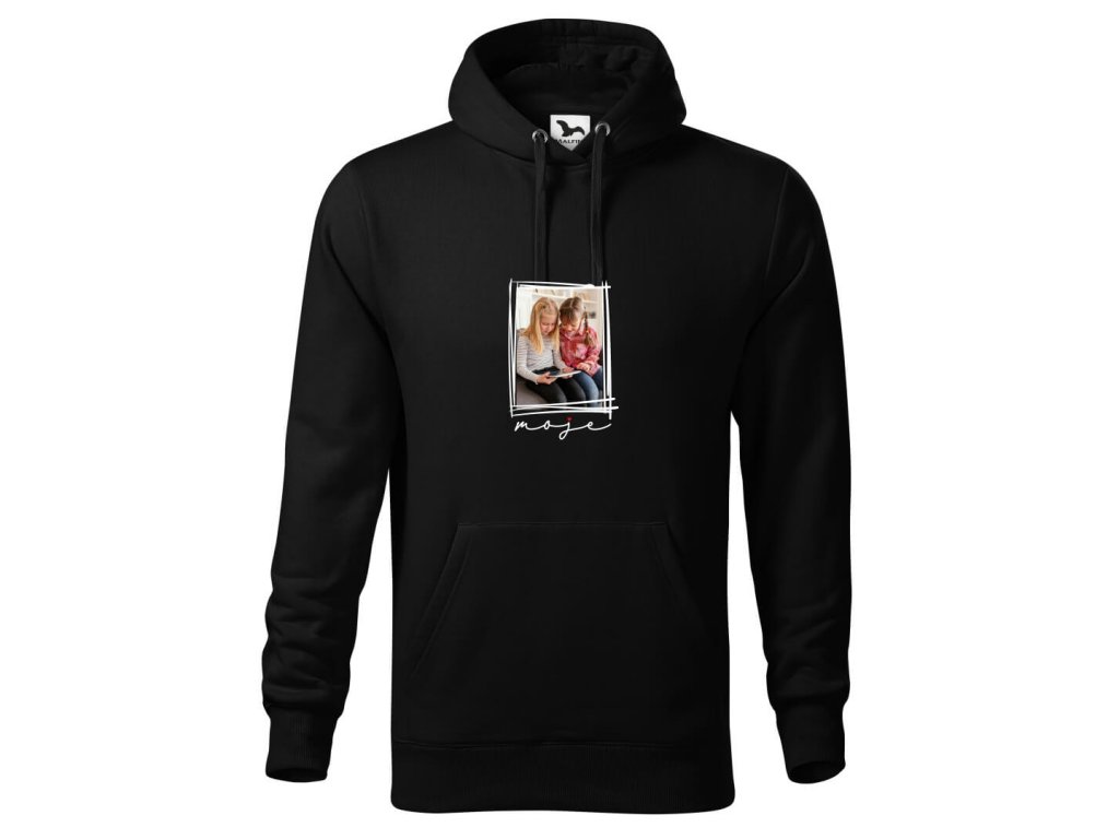 Čierna mikina s fotkou rámik Moje Unisex strih FOTOpošta