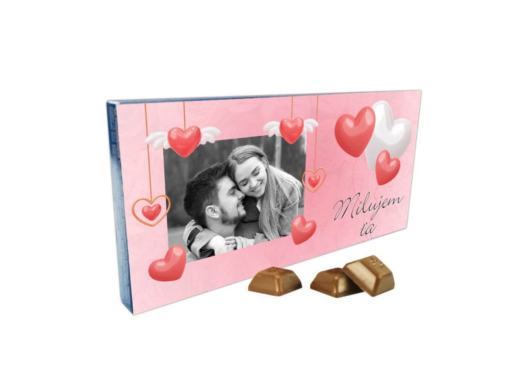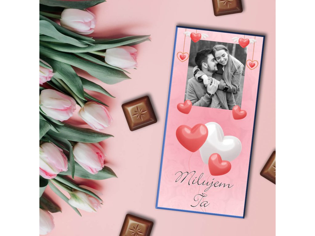Čokoláda 100 g s fotkou rámik Valentín srdce balón FOTOPOŠTA