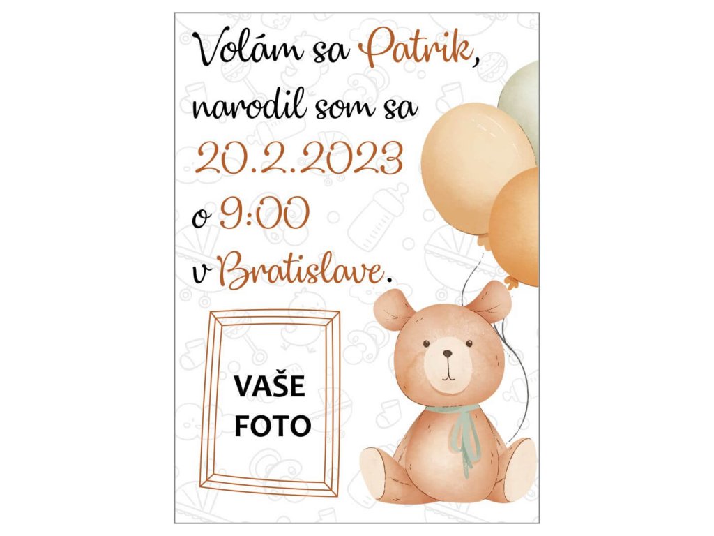 TABUĽKA Dieťa medvedík s fotkou 21X15CM-Fotopošta