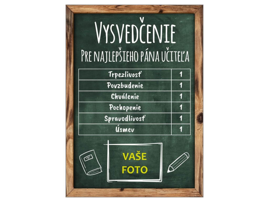 TABUĽKA Vysvedčenie učiteľ s fotkou zelená 21X15CM-Fotopošta