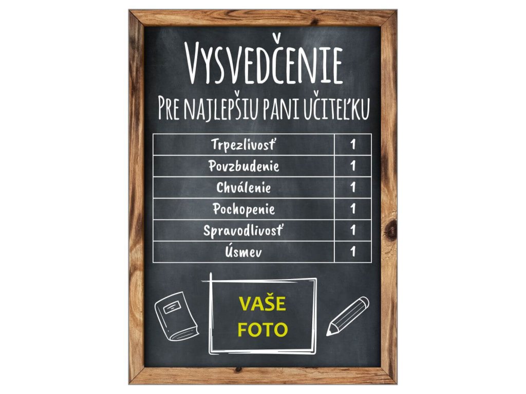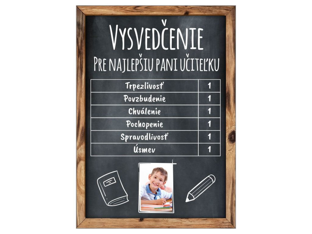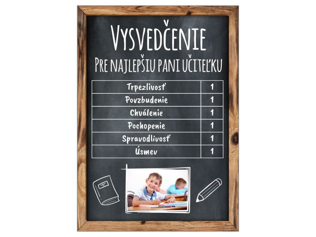 TABUĽKA Vysvedčenie učiteľka s fotkou čierna 21X15CM-Fotopošta