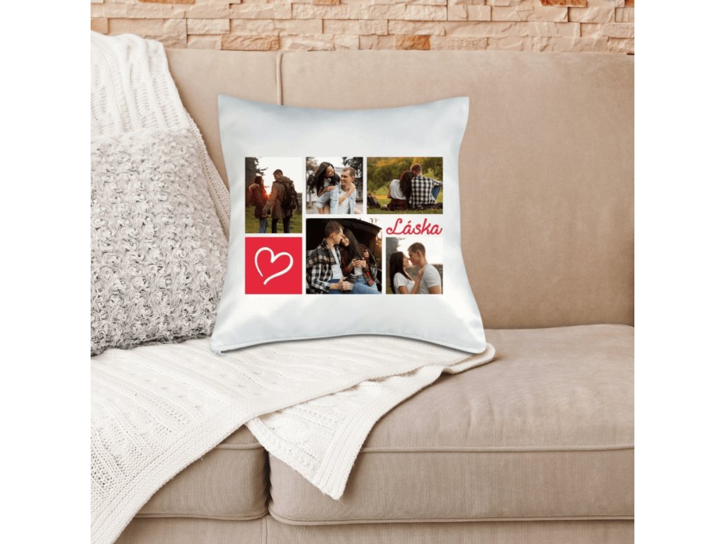 Vankúš s fotkou rámik Láska koláž červený 40x40 cm FOTOpošta