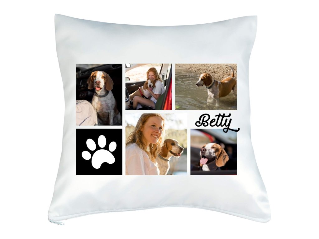 Vankúš s fotkou rámik Labka koláž čierny 40x40 cm FOTOpošta