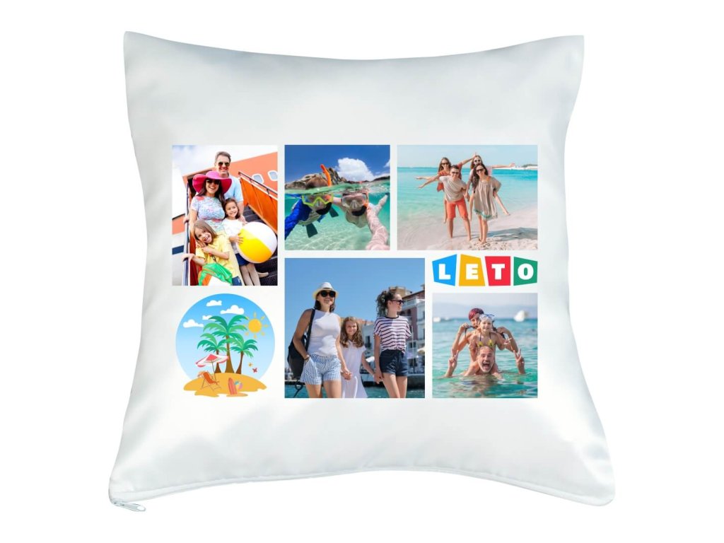 Vankúš s fotkou rámik LETO koláž 40x40 cm FOTOpošta