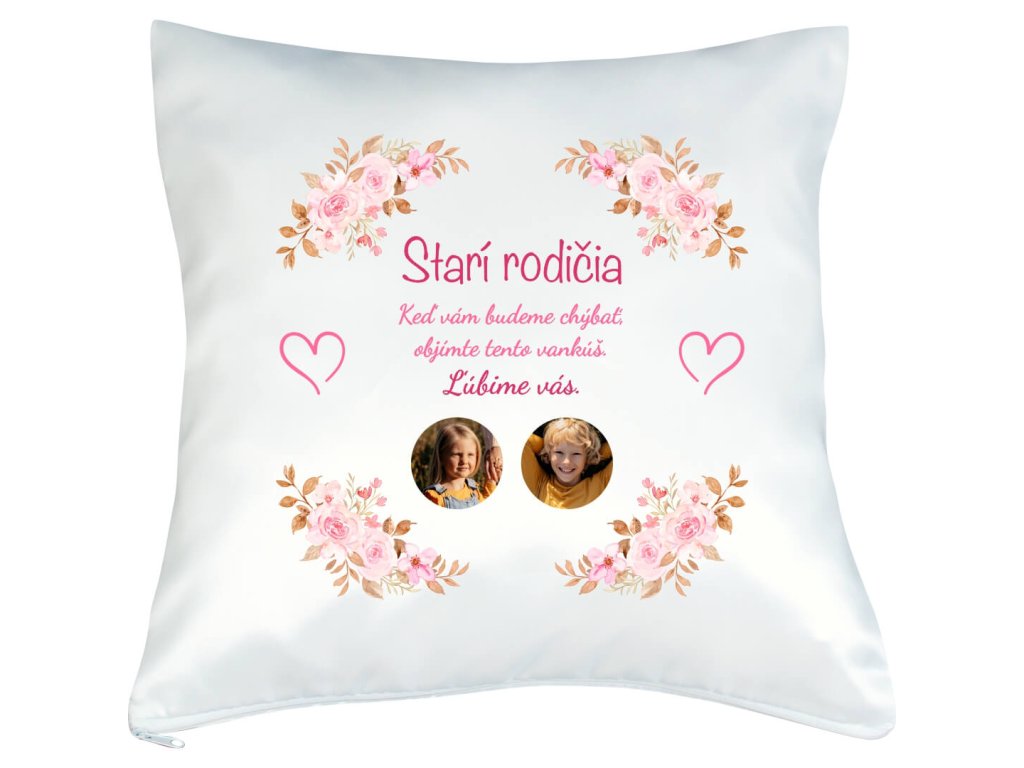 Vankúš s fotkou Starí rodičia objatie 40x40 cm FOTOpošta