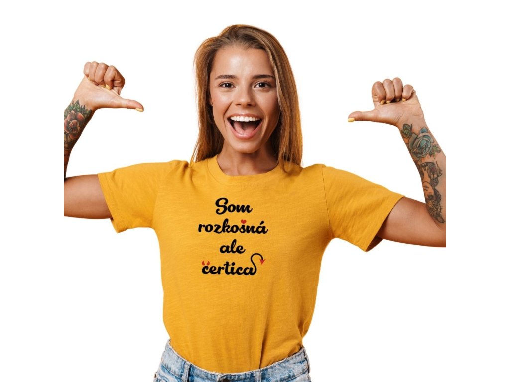 Vtipné tričko s potlačou čertica je ideálny darček pre ženy v ktoré sú ako anjel, ale je v nich ukrytý aj malý čertík...