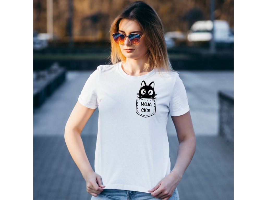 Vtipné tričko s potlačou mačičky vo vrecku je ideálny darček pre všetky milovníčky mačiek