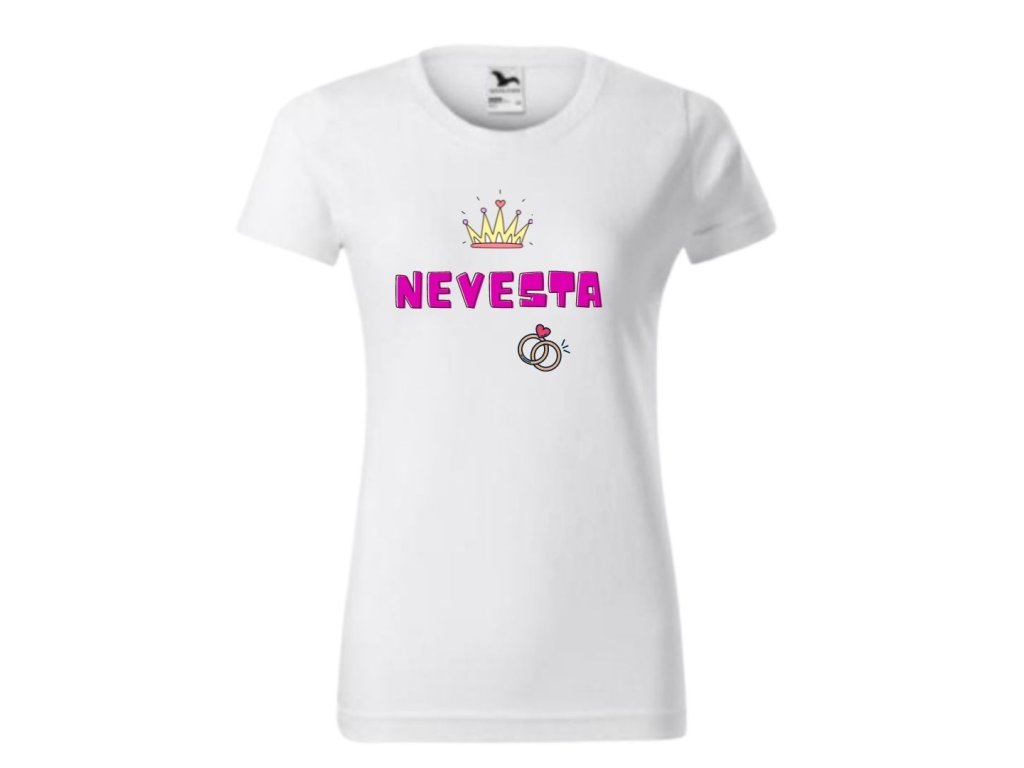 Vtipné tričko s potlačou nevesta je ideálny darček pre všetky nastávajuce nevesty na rozlúčku so slobodou..