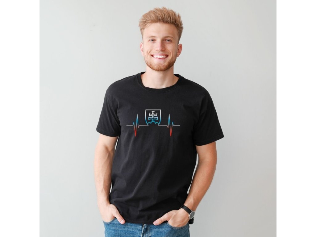 Vtipné tričko s potlačou slovenského znaku v EKG krivke je ideálny darček pre všetkých, ktorým v hrudi bije srdce za Slovensko a sú na to hrdí