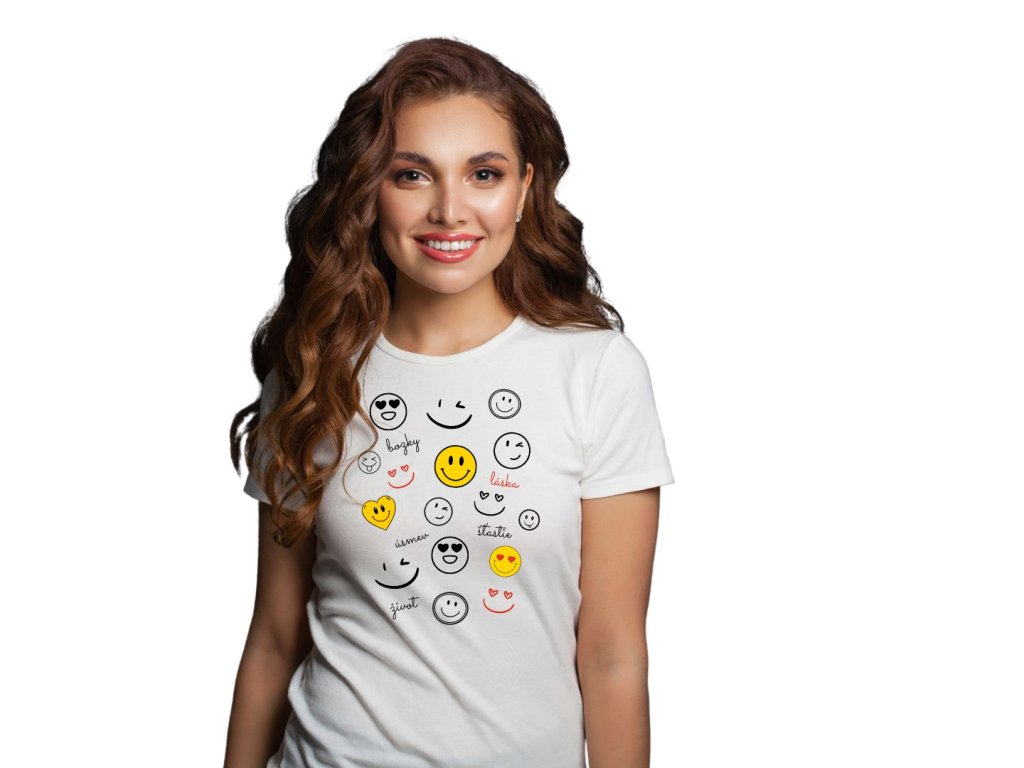 Vtipné tričko s vtipnou potlačou smajlíkov je ideálny darček pre všetky ženy , ktoré milujú život a vedia že s úsmevom je život krajší..
