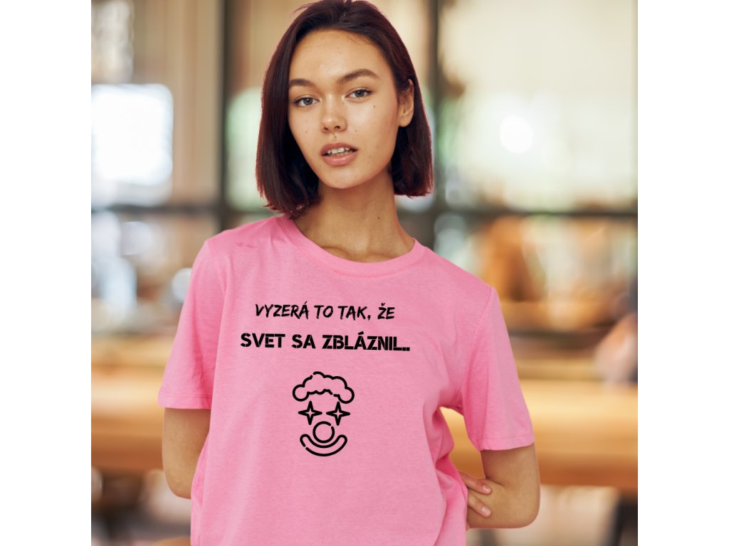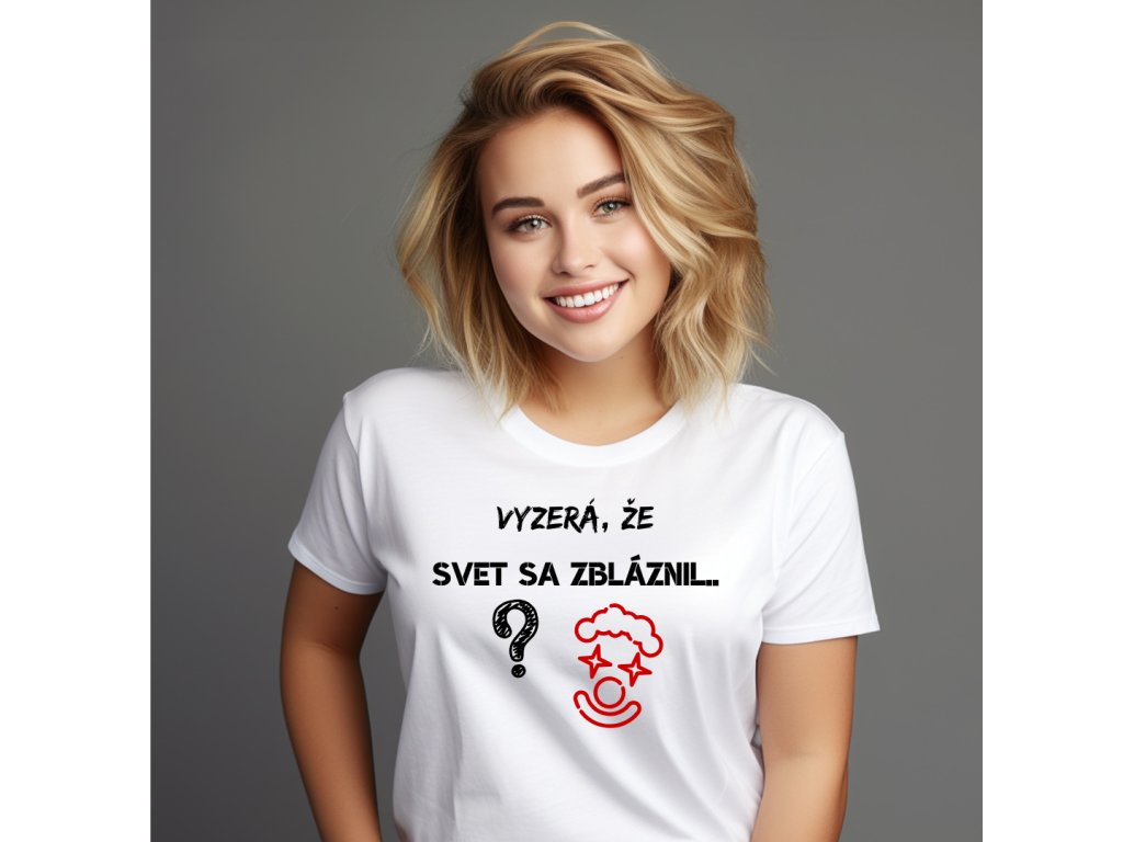 Vtipné tričko s potlačou svet sa zbláznil...  je ideálny darček pre každú ženu ,ktorá má pocit že nerozumie tomu čo sa deje okolo nej ..doma v práci vo svete..